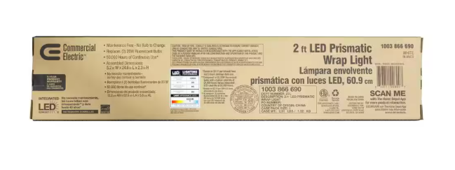 1-Pack 2 ft. 120-Volt 1900 Lumens White integrated LED Wraparound Light with Prismatic Lens