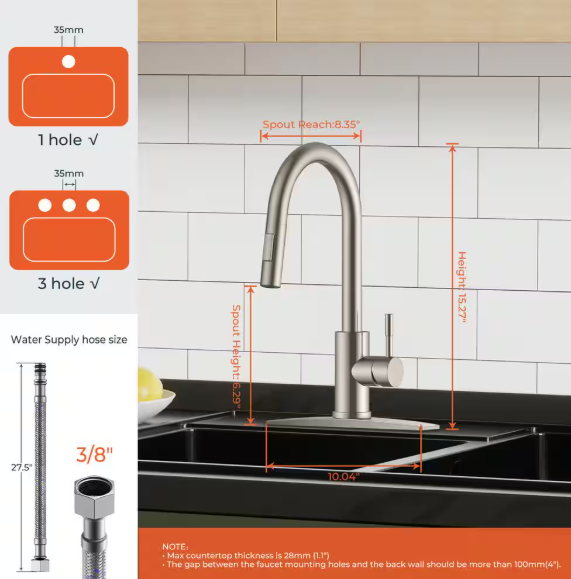 androme Single Handle Pull Down Sprayer Kitchen Faucet with Deckplate and Flexible Hose in Brushed Nickel 43BBBBN