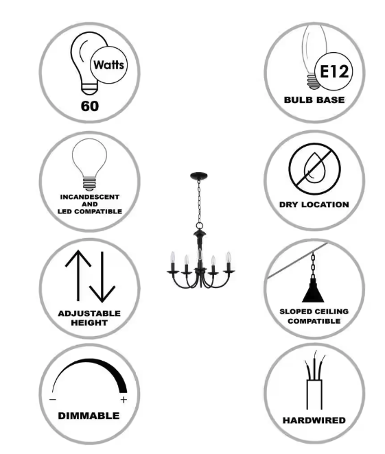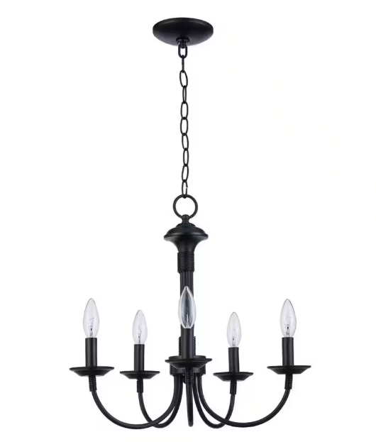 Bel Air Lighting Candle 5-Light Black Candle Chandelier Light Fixture 9015 BK