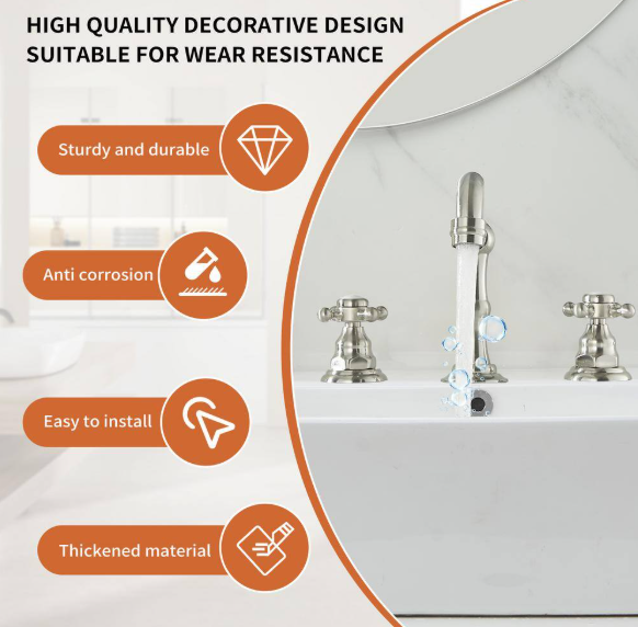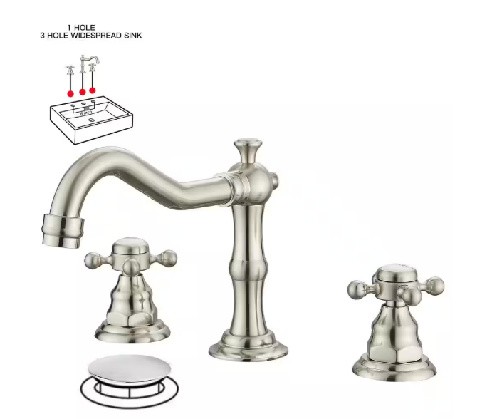 BWE 8 in. Widespread 2-Handle 3-Hole Bathroom Faucet with Drain Kit and cUPC Water Supply Lines in Brushed Nickel A-916452-N-4