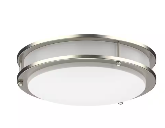 DYMOND 10 in. Modern Double Ring Selectable LED Flush Mount Ceiling Light Fixture Brushed Nickel For Kitchen Bedroom Laundry DR10BNSCD1