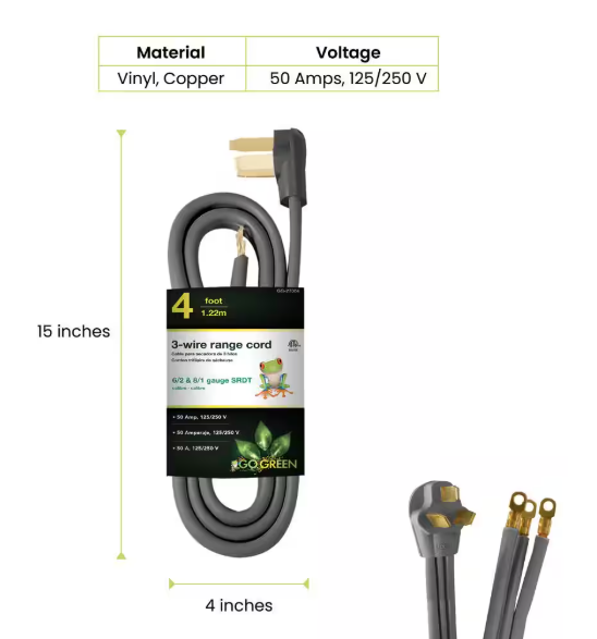 GoGreen Power 4 ft. 6/2 and 8/1 3-Wire Range Cord GG-27004