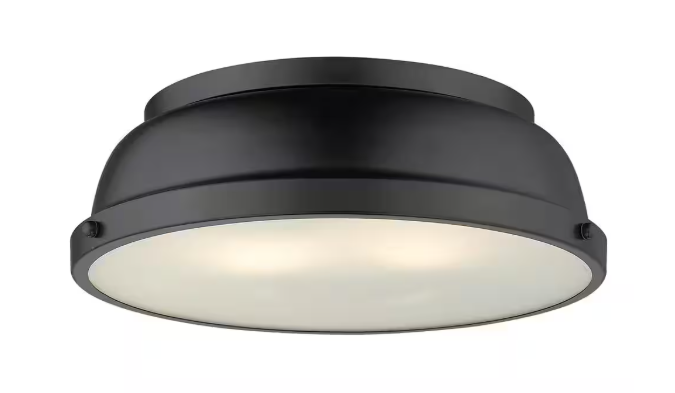 Golden Lighting Duncan 14 in. 2-Light Matte Black Flush Mount with Matte Black Shade 3602-14 BLK-BLK