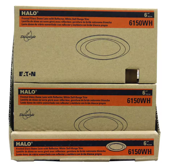 HALO E26 Series 6 in. White Recessed Ceiling Light Fixture Trim with Frosted Glass Lens, Wet Rated Shower Light 6150WH