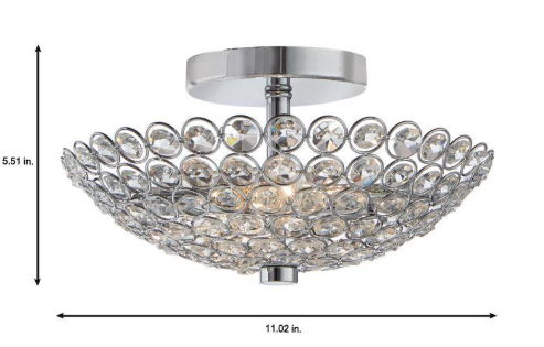 Hampton Bay- Barclay 11 in. 2-Light Chrome and Crystal Semi-Flush Mount