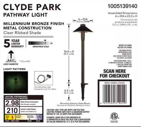 Hampton Bay Clyde Park 210 Lumen Low Voltage Bronze Integrated LED Outdoor Landscape Weather Resistant Path Light (1-Pack)