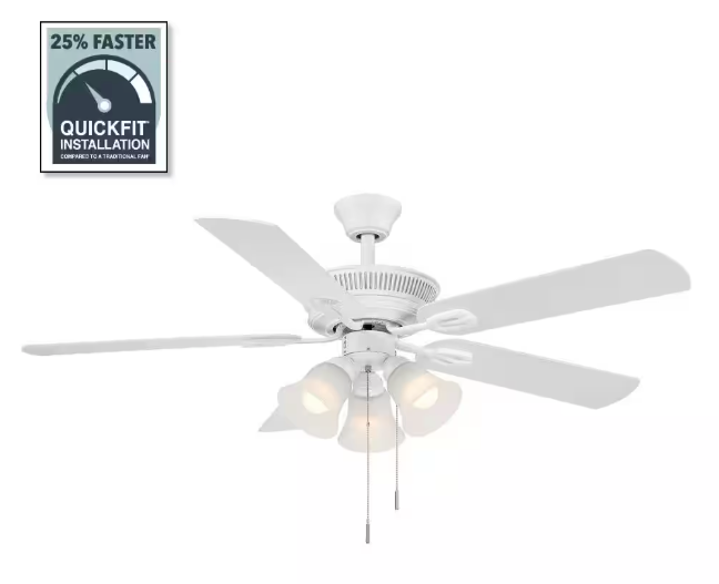 Hampton Bay Glendale III 52 in. LED Indoor White Ceiling Fan with Light and Pull Chains AK338-WH