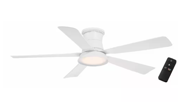 Hampton Bay Hawkspur 52 in. Indoor/Outdoor Matte White Low Profile Ceiling Fan with Adjustable White LED with Remote Included AK424-MWH