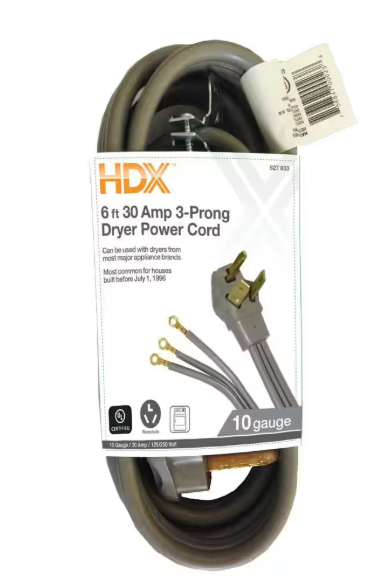 HDX 6 ft. 10/3 30 Amp 3-Prong Dryer Power Cord, Gray