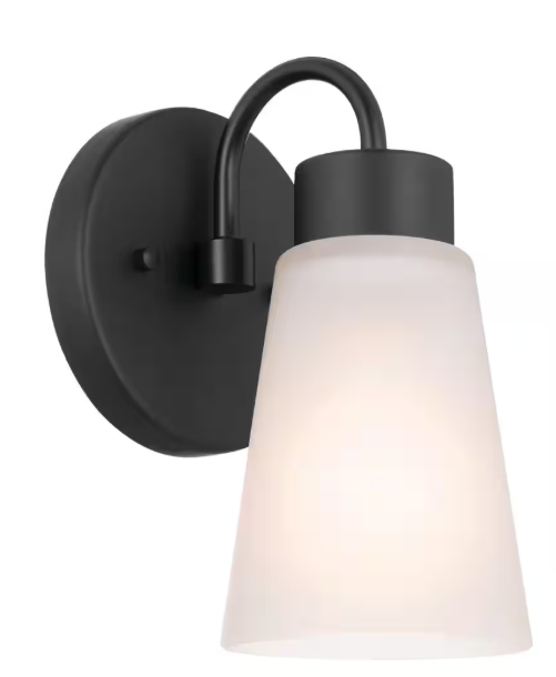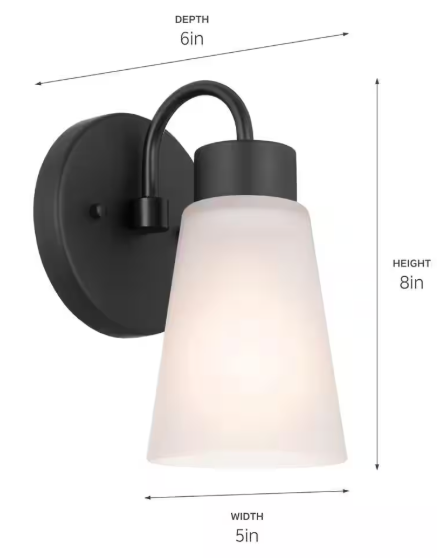 KICHLER Erma 1-Light Black Bathroom Indoor Wall Sconce Light with Satin Etched Glass Shade