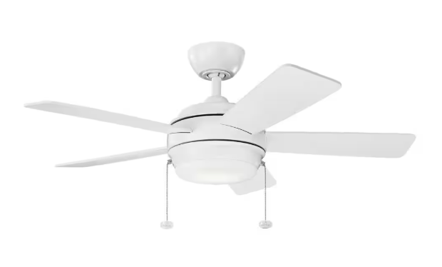 KICHLER Starkk 42 in. Indoor Matte White Downrod Mount Ceiling Fan with Integrated LED with Pull Chain