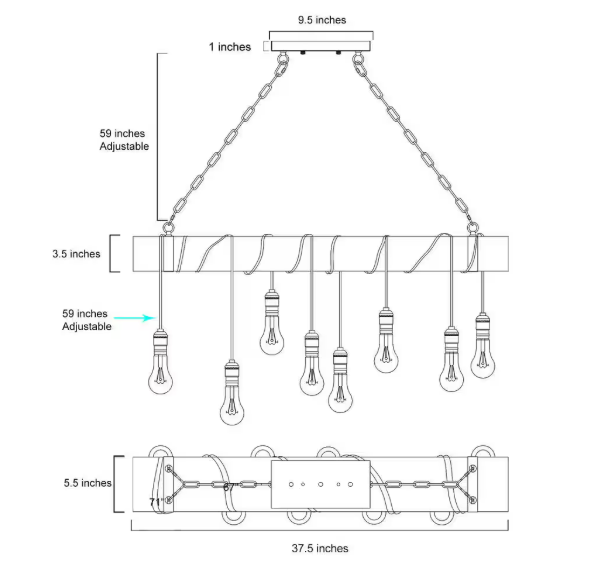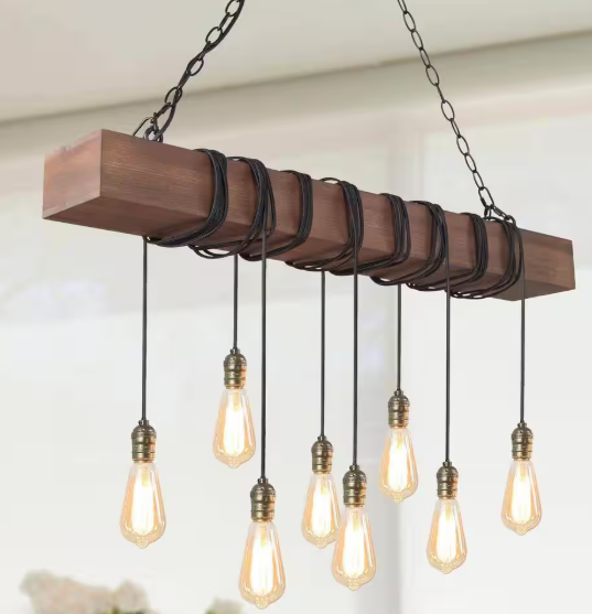 LNC 37.5 in 8-Light Farmhouse Black and Wooden Linear Chandelier Rustic Island Pendant for Dining Room, LED Compatible IRRNQEHD13687L7