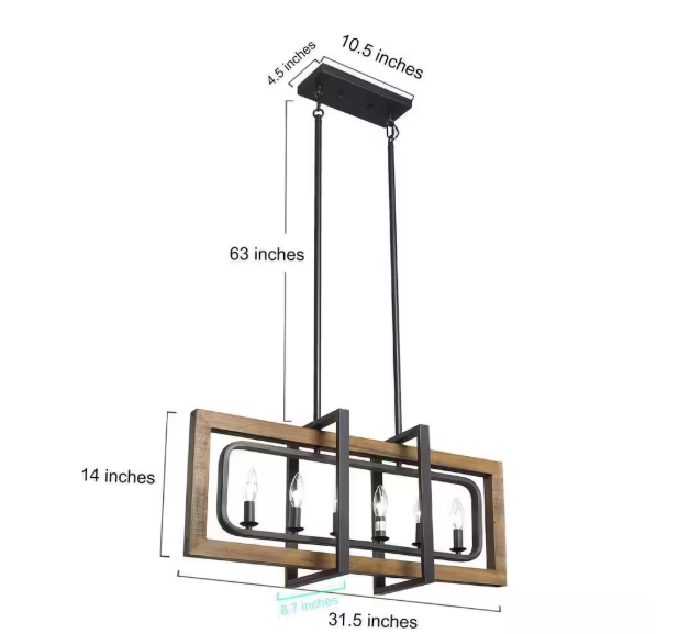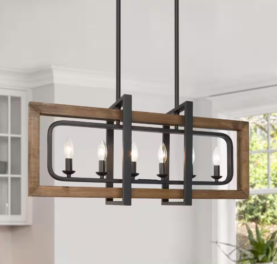 LNC Farmhouse 31.5 in. 6-Light Solid Wood Candlestick Chandelier with Black Rectangle Frame for Dining Room Kitchen Island A03429