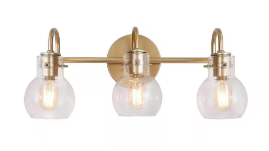 LNC Robb Modern 3-Light Gold Bathroom Vanity Light Interior Powder Room Lighting with Clear Globe Shades LLRBVYHL135697V
