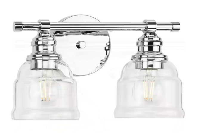 Progress Lighting Ambrose 13 in. 2-Light Polished Chrome with Clear Glass Shades New Traditional Bath Vanity Light P300374-015
