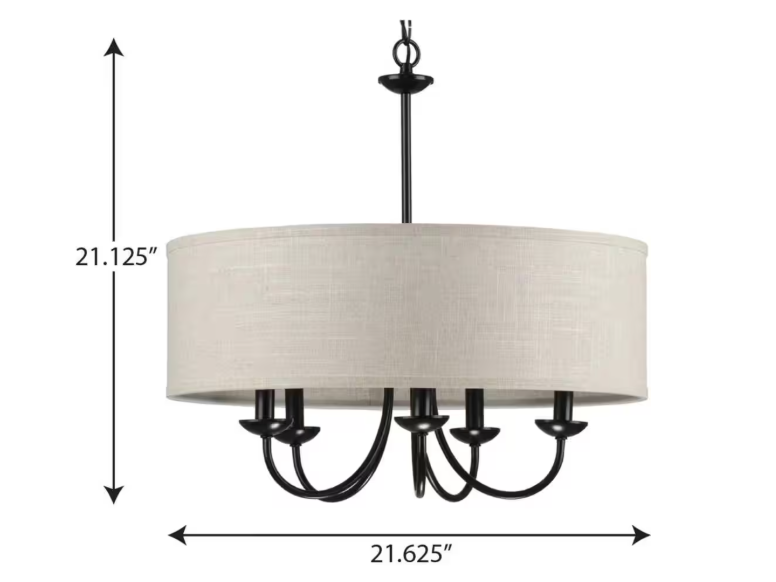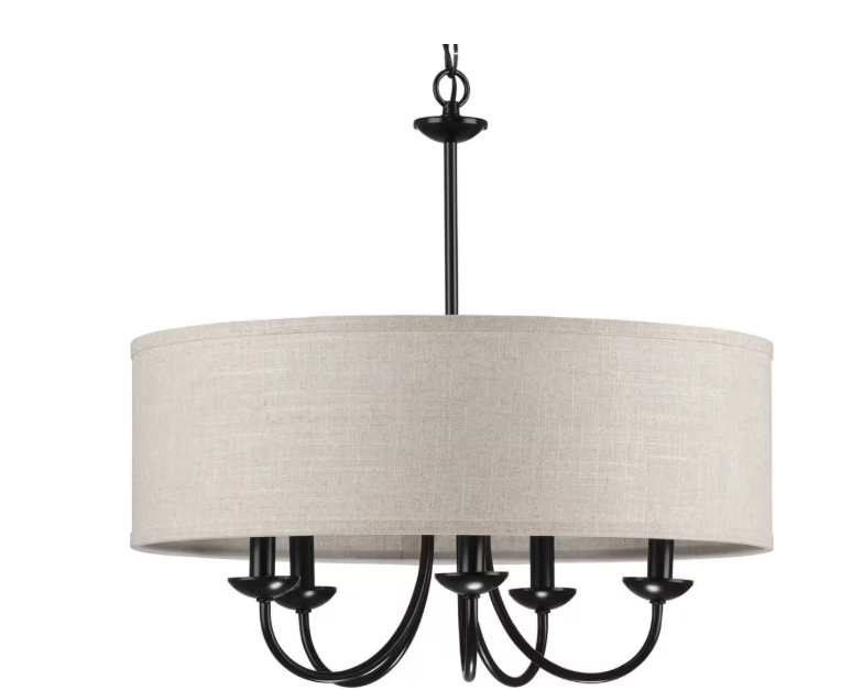 Progress Lighting Drum Shade Collection Farmhouse 21-5/8 in. 5-Light Matte Black with Harvest Linen Shade Chandelier Light P400193-031