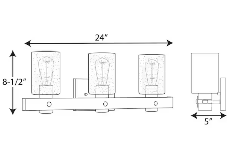 Progress Lighting Gulliver Collection 24 in. 3-Light Graphite Finish Clear Seeded Glass Coastal Bathroom Vanity Light