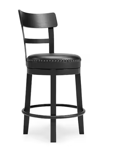 Signature DESIGN BY ASHLEY Valebeck 24 in. Black Low Back Wood Bar Stool Upholstered Stool with Faux Leather Seat