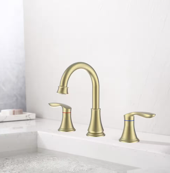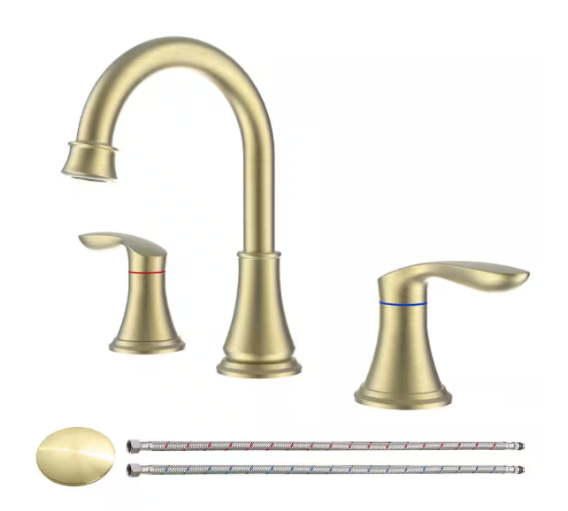 Unbranded Double Handle 8 in. Widespread Bathroom Faucet 3 Hole for Bathroom Sink in Brushed Gold K-E6078NG-S-1