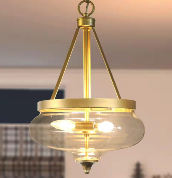 Uolfin Transitional Island Round Pendent Light, 3-Light Brass Circle Pendant Hanging Light with Clear Glass Shade W7FBZMHD23693V2