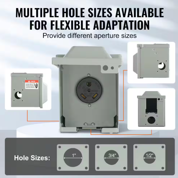 VEVOR RV Power Outlet Box Indoor/Outdoor 30 Amp 125-Volt/250-Volt Receptacle Panel NEMA TT-30R Single Outlet for RV Camper Car DGNRV30ATT30RA943V0